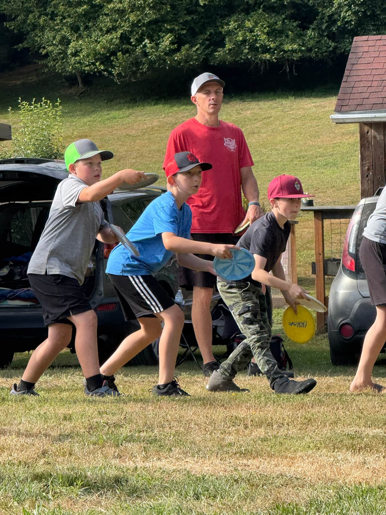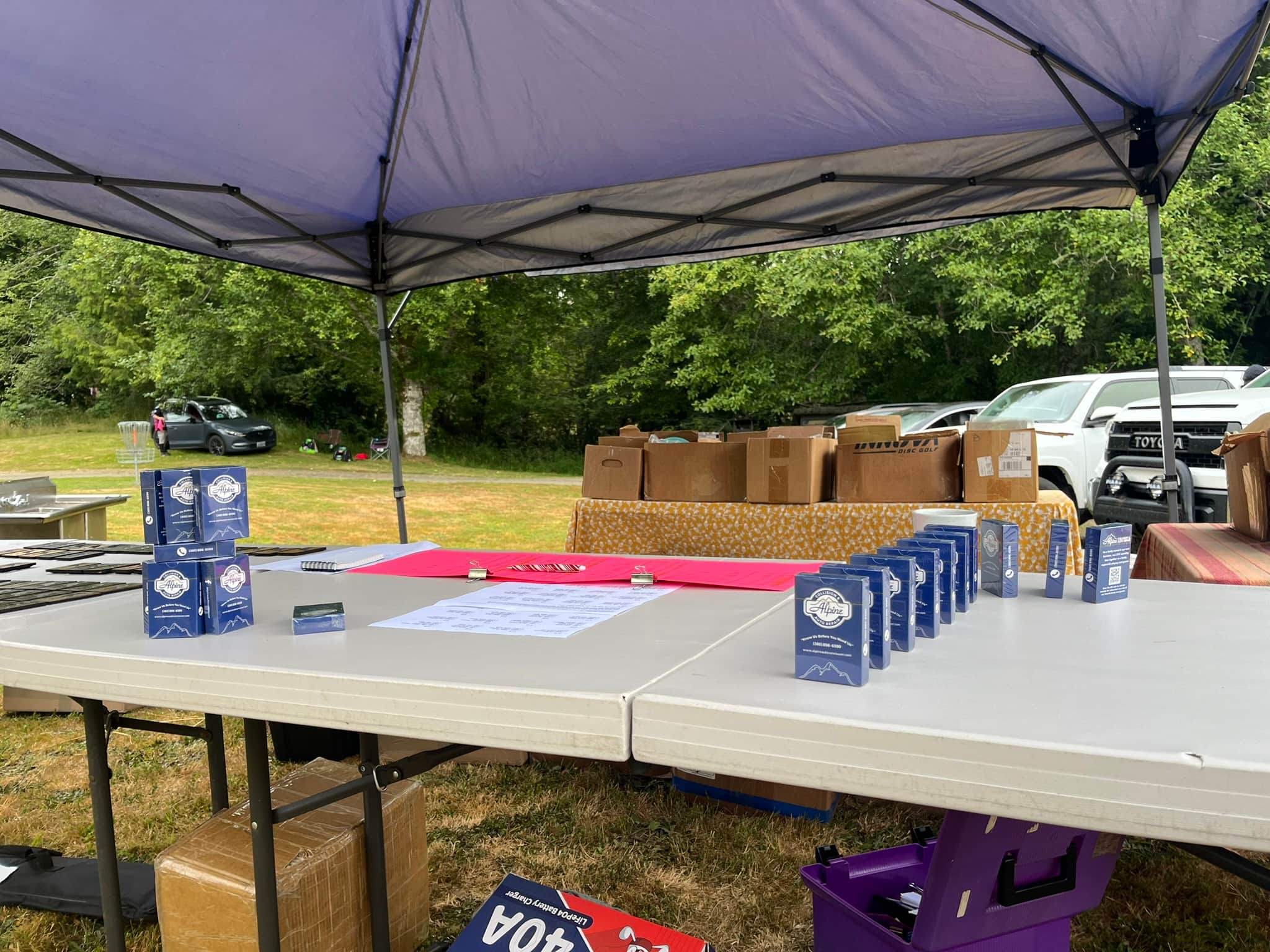 Our full 21-hole layout features DiscCatcher Pro 28 baskets and covers rolling terrain through meadows, evergreens, and gentle hills. Players love the mix of open and wooded shots, with fair lines and just enough challenge to keep every round interesting.